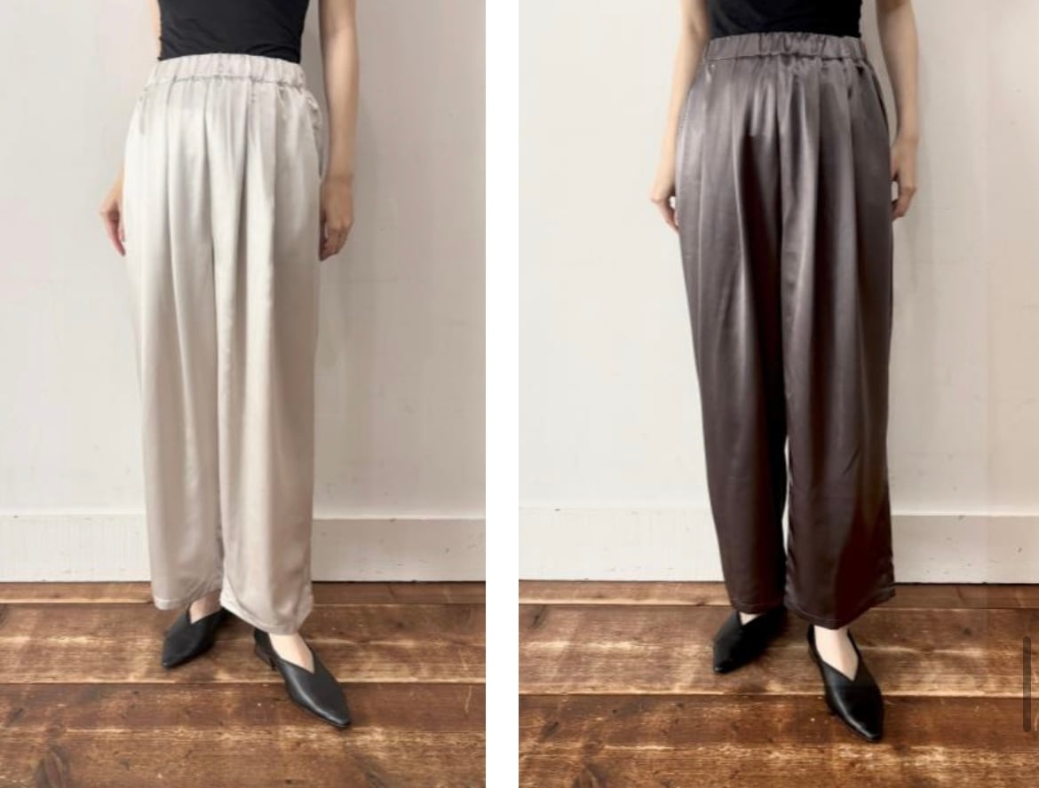 スタイリングの幅を広げるサテンタックイージーパンツです。この機会にぜひお迎えください!